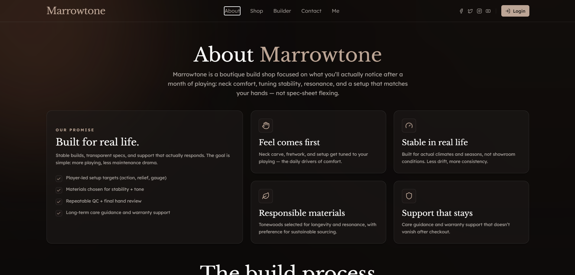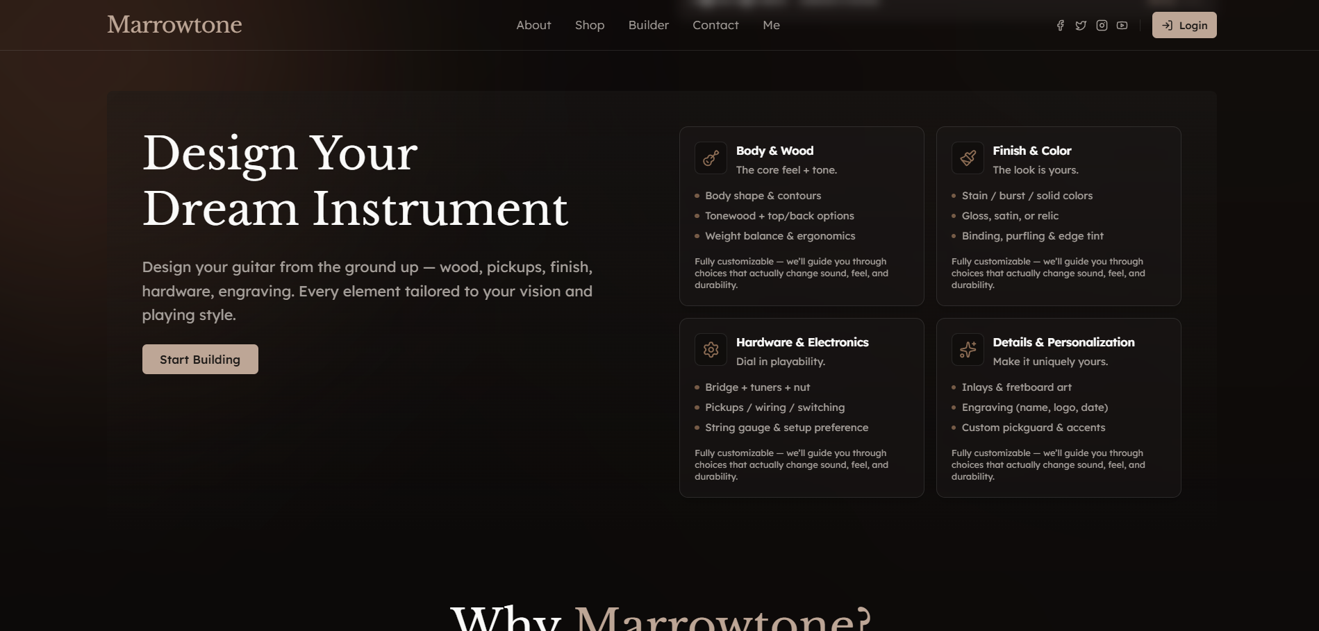 Guitar shops are personal — they're about craftsmanship, tone, and legacy. I built Marrowtone to showcase how modern web development can honor that same attention to detail.